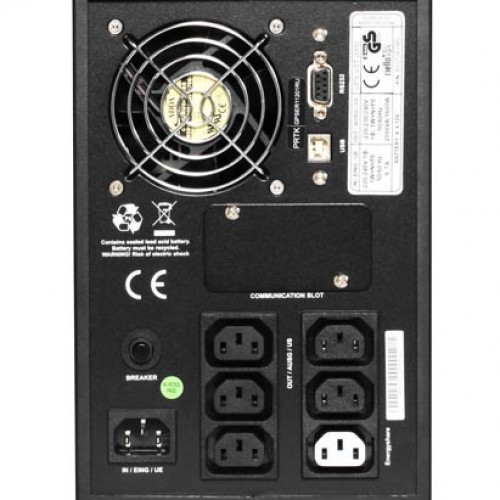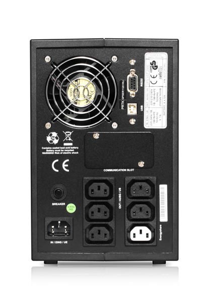 An EnergyShare socket allows loadshedding and the shutdown of less sensitive peripheral devices to extend battery runtime for critical loads. “Hot Swap” batteries can be removed via the front panel for easy and safe UPS maintenance. Battery test facility to detect deteriorating battery performance. Deep discharge protection to reduce battery ageing.